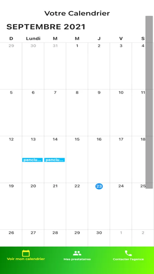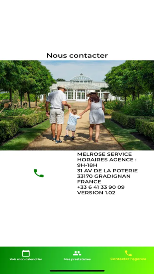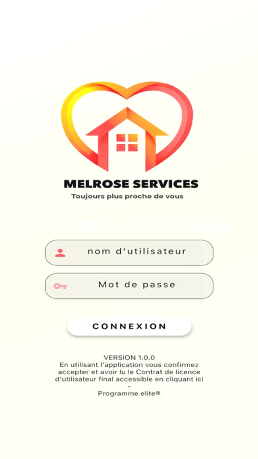 Application destinée au personnes désireuses d'accéder au calendrier de leur prestation Melrose services et de pouvoir contacter leur prestataire ou l'agence.
