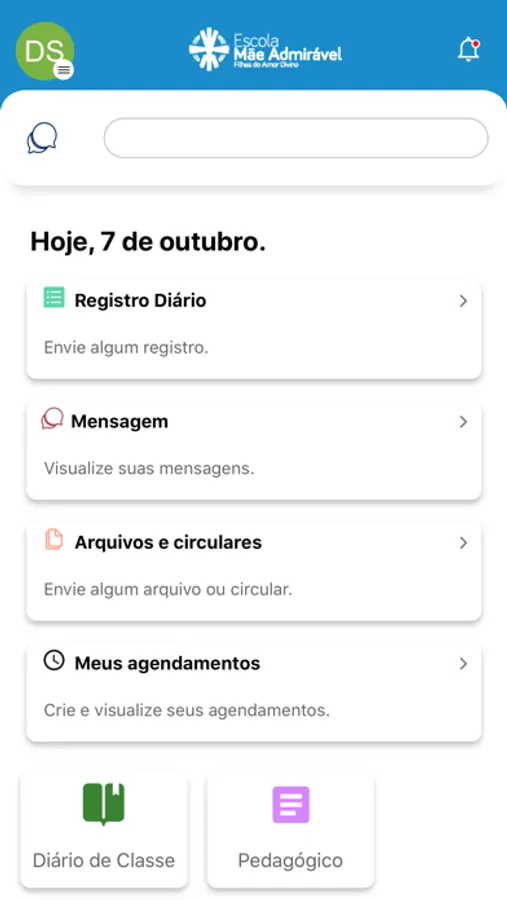 • Consulta ao registro diário para os pais acompanharem a rotina do estudante como alimentação, higiene e sono.