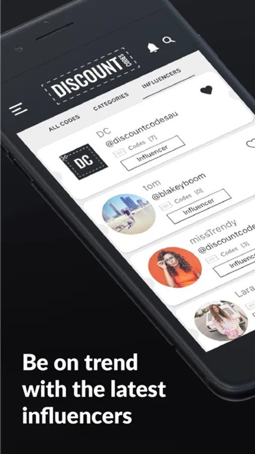 Discount Codes is a simple and effective App to get you started with your online shopping needs. We are Australia's first Influencer based app where you will find all your favourite Influencers and Businesses all with their valid discount codes.
