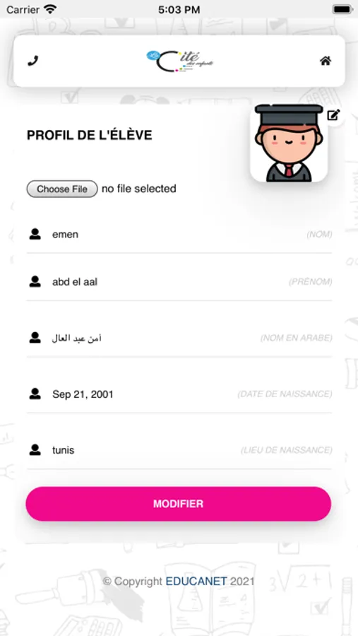 L'application Cité des enfants mobile permet au parent d'être à côté de son enfant: suivre les activités pédagogiques, recevoir des conseils du cadre de l'école, être à jour pour les évènements culturels et sportifs. Contacter l'administration de l'école, recevoir les bulletins des notes, ....Cité des enfants Mobile c'est être informé là où vous êtes... Cher parent Cité des enfants télécharger Cité des enfants Mobile et entrer votre identifiant et mot de passe disponible par sms ou à l'administration de l'école.