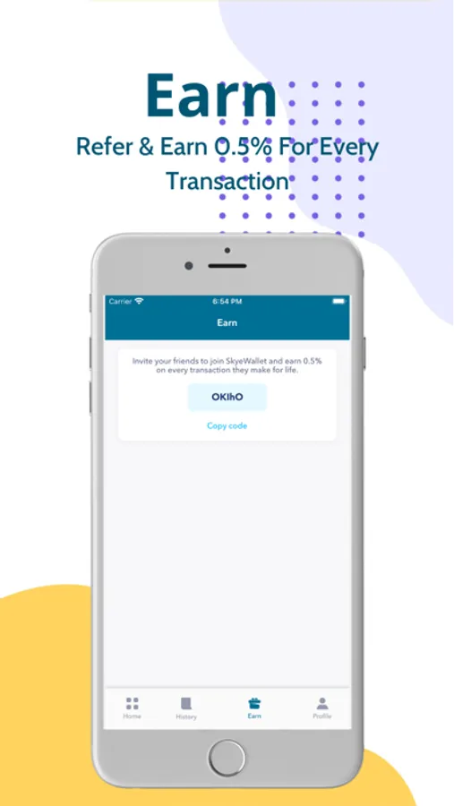 For every user you refer Skye Wallet to, you are rewarded with 0.5% of their transaction as referral bonus. This is passive income for you.