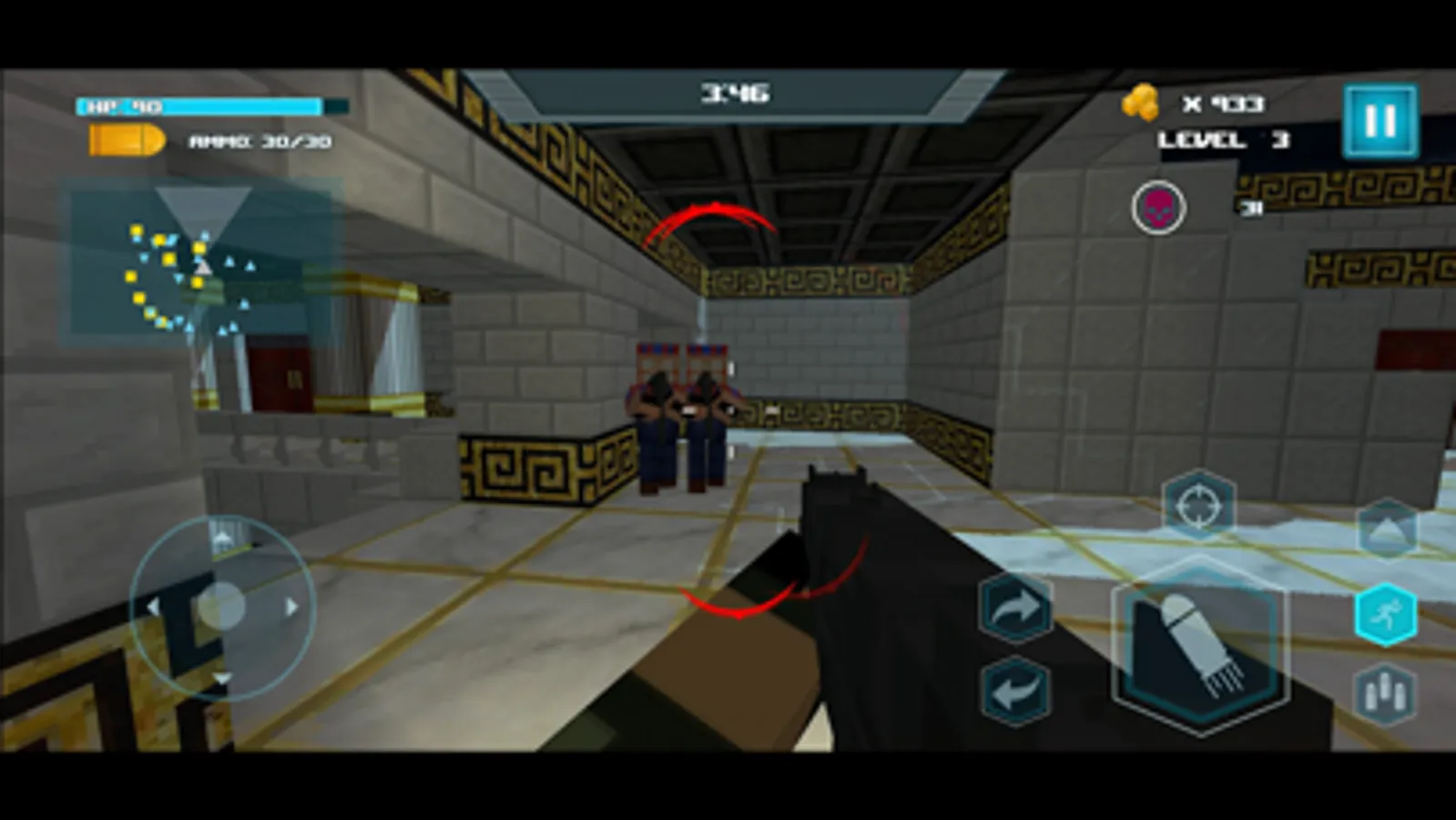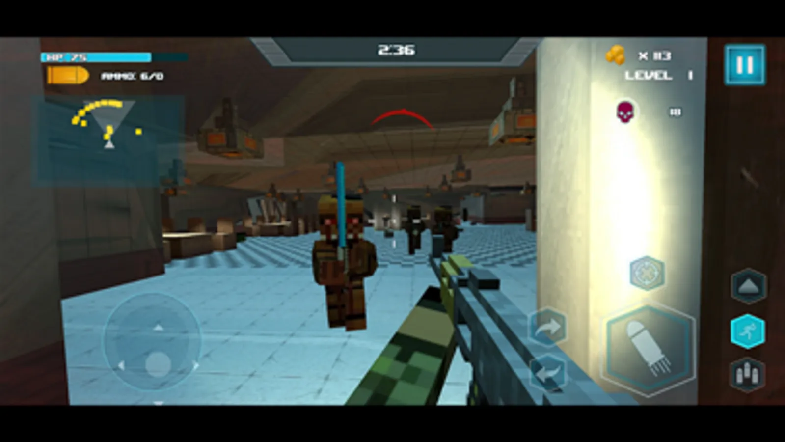 • Collect health and ammo pickups as you explore your surroundings