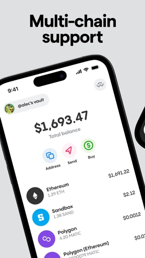 - Connect to decentralization apps like OpenSea, The Sandbox Game, and more with one click.