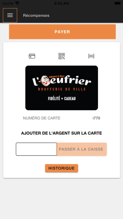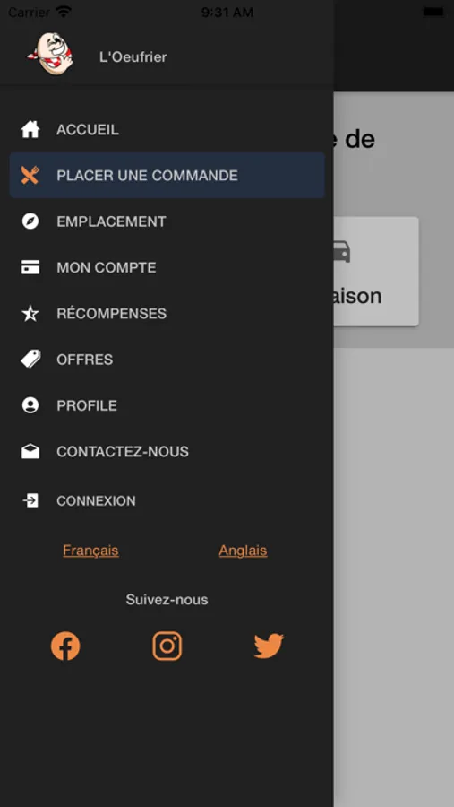 The l’Oeufrier Restaurants Mobile App.