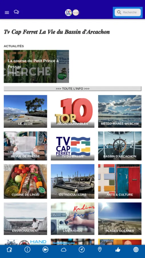 ne sont pas oubliées avec une page intégrant les marées du Cap Ferret et d’Arès accompagnée d’une Webcam en temps réel de la jetée du Canon et des plages du Truc Vert et Grand Crohot. Ainsi vous aurez toutes les informations utiles sur les condtions météorologiques pour votre venue sur un des villages du Cap Ferret