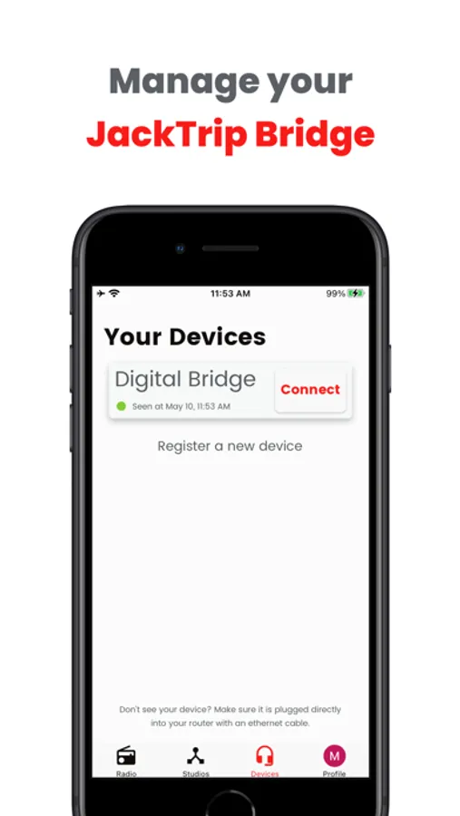 Connect your JackTrip Bridge to a Virtual Studio from your iPhone or iPad!
