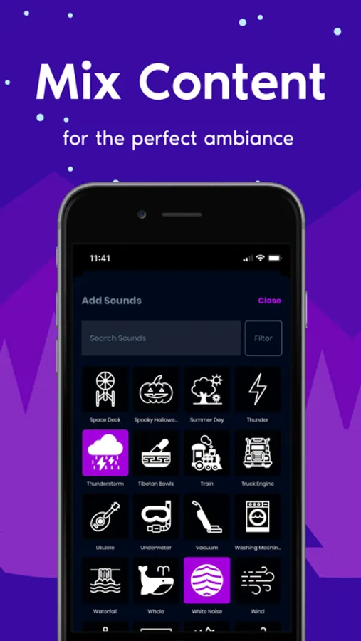 Our sounds are professionally recorded and carefully reviewed to ensure they are free from distractions. Supported sounds include: