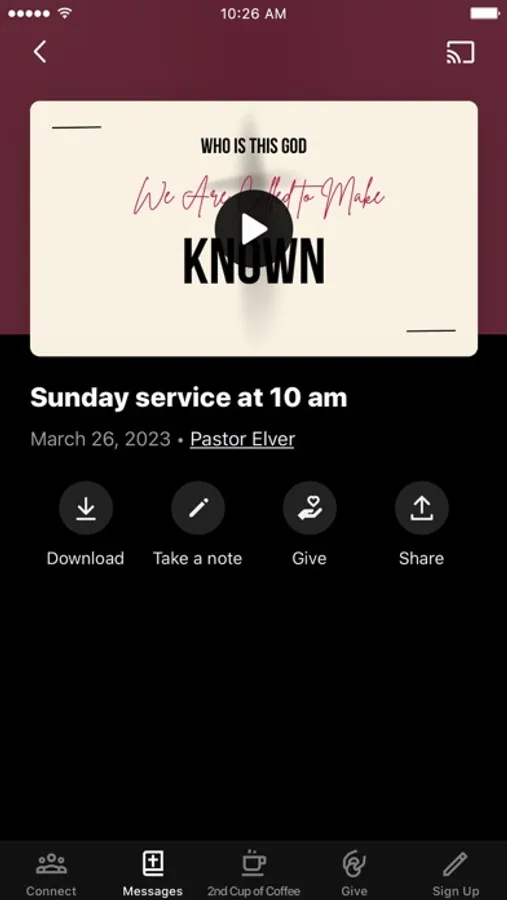 With this app, you can: watch or listen to past messages; share your favorite messages via Twitter, Facebook, or email; and download messages for offline listening. You can also stay connected with what is going on in church life through the calendar and video announcements.