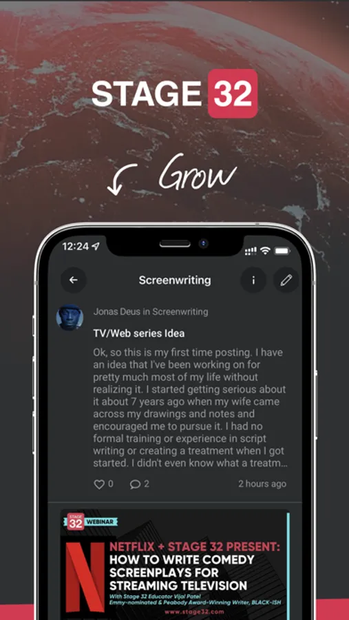 The platform now boasts over 1,000,000 creatives and professionals worldwide. Additionally, the Stage 32 education library is the largest of its kind anywhere in the world, with over 2,000 hours of film, television and new media webinars, classes and labs taught by the most respected and revered voices in the industry.