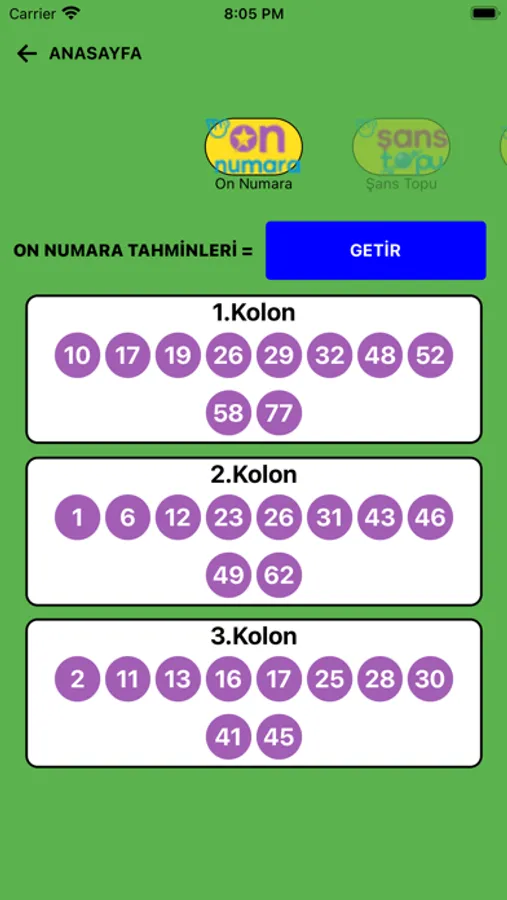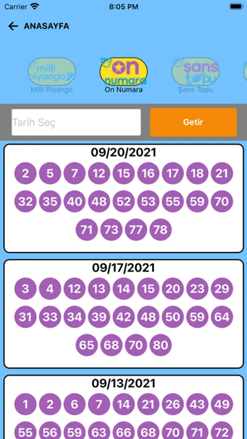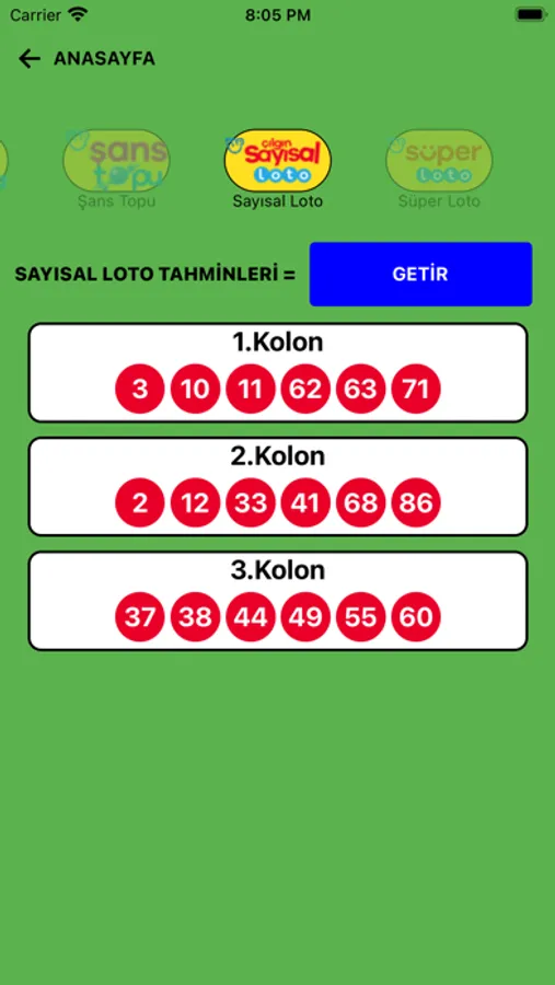 Milli Piyango sayısal oyunlarının, güncel ve eski tarihli sonuçlarını görebileceğiniz ve çekilişlerde kullanılan numara seçme yönteminin, birebir aynısının kullanılarak yapılan, tahmin bölümünden faydalanarak, kazanma ihtimali olan kuponlar hazırlayabileceğiniz, pratik ve sade bir uygulama.