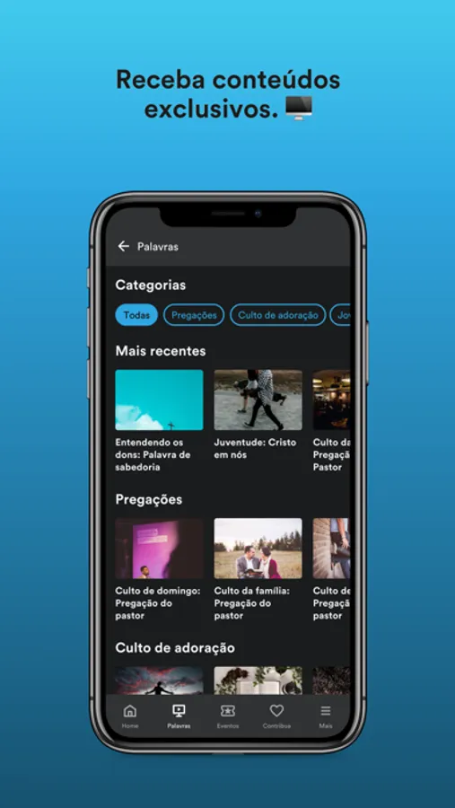 - Siga a agenda e fique por dentro de tudo que acontece na igreja, inscreva-se em eventos e tenha seus ingressos sempre com você.