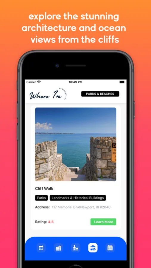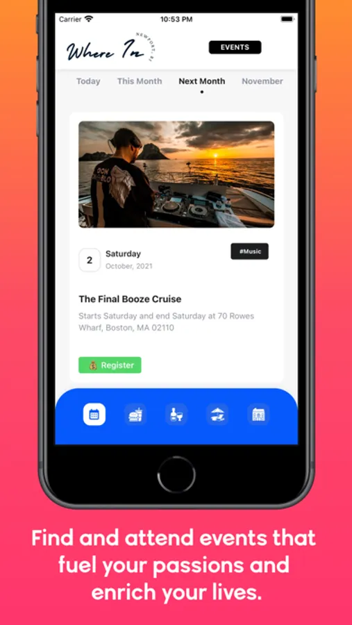 Where In Newport is an app that allows anybody in Newport, RI to find and attend events that fuel their passions and enrich their lives. Music festivals, restaurants, pubs, tours, marathons, conferences, community rallies, and fundraisers, as well as gaming competitions and air guitar competitions, are just a few examples. Our goal is to bring the people of Newport, Rhode Island together through live experiences.