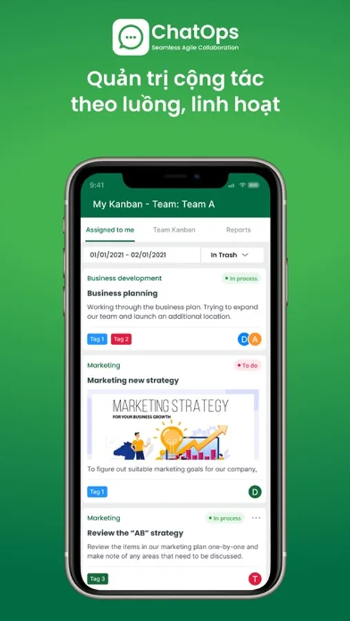 + Quản lý đầu việc, task, dự án theo bảng Kanban, trực quan và dễ dàng