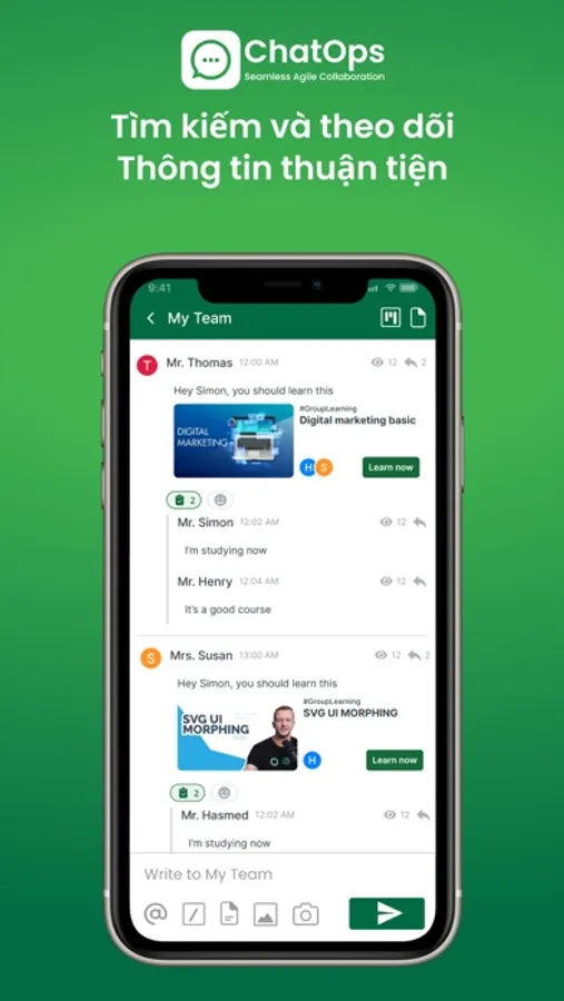 + Team Conversations: Thuận tiện cho các thành viên vô các phòng thoại để giao tiếp, họp