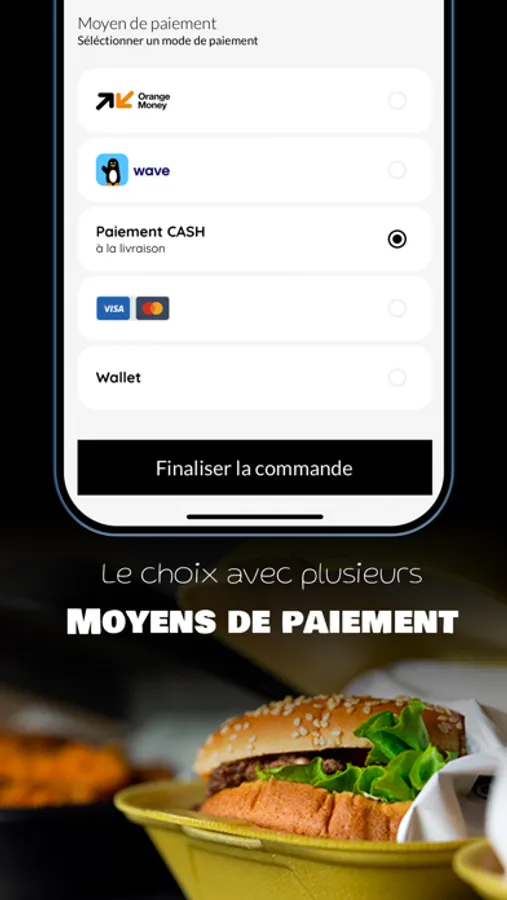 Commandez quand vous voulez, payez avec n'importe quel moyen de paiement ( Wave , Orange Money, Carte bancaire, Cash à la livraison, Wallet ) avec un service de livraison fonctionnel 24h/7.