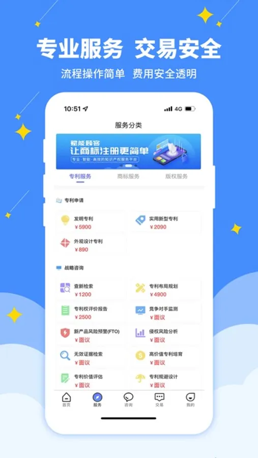 专大师以“让无形的资产变成有形的财富”为使命,秉承“专注、专一、专业”的精神,为广大用户提供专利申请、专利布局规划、专利交易、高价值专利产业化对接、商标交易、商标注册、商标服务、版权服务、创新思维培训、手板制作、法律维权诉讼、营销推广、产品代运营等一条龙服务,致力于打造领先的专业从事知识产权全产业链服务的平台。