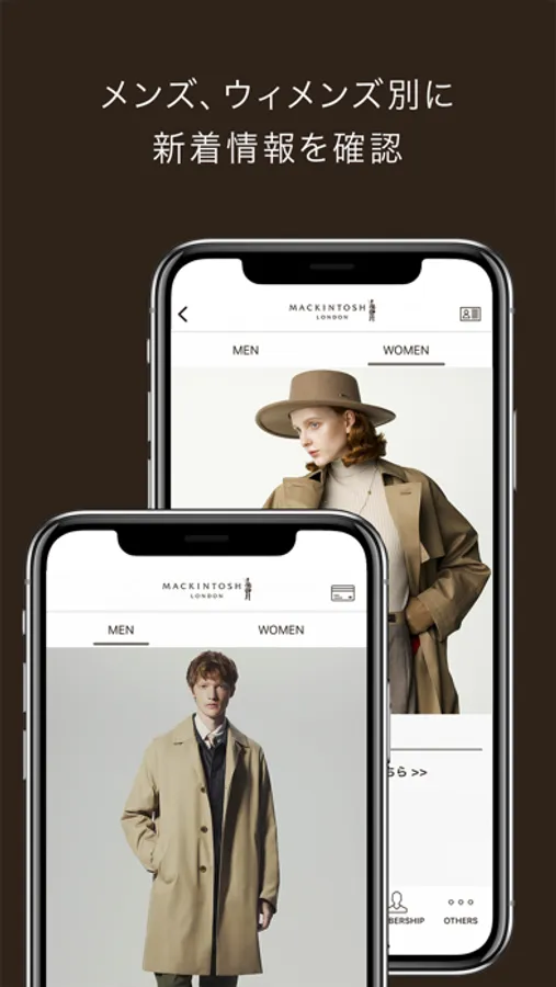マッキントッシュ ロンドンがおすすめするスタイリングをMEN、WOMEN別でチェックできます。