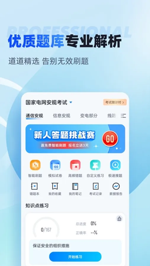 安规题库新增搜题功能,安规考试中的疑问一搜便知,更支持语音和拍照搜题。
