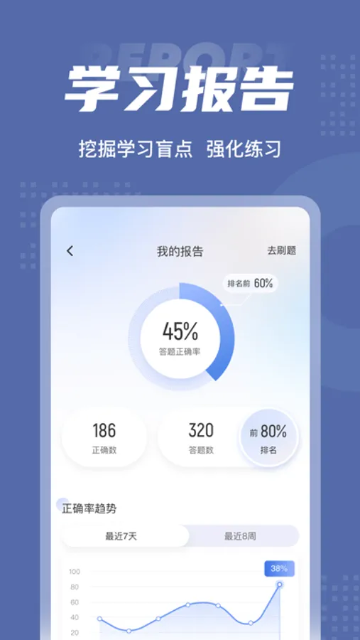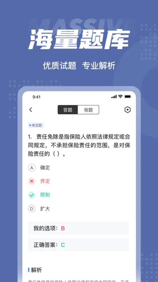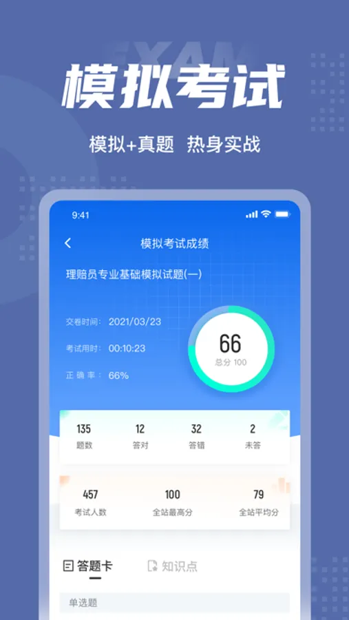 理赔员考试题库内含考点练习,全国通用卷以及地区卷模拟练习,以及按照固定考试比重的随机式的抽题的真题考场,成绩单实时记录考试数据,一点一滴的反馈考生近期学习状态以及自我正确率的提升,大大的给予考生通过考试的信心。