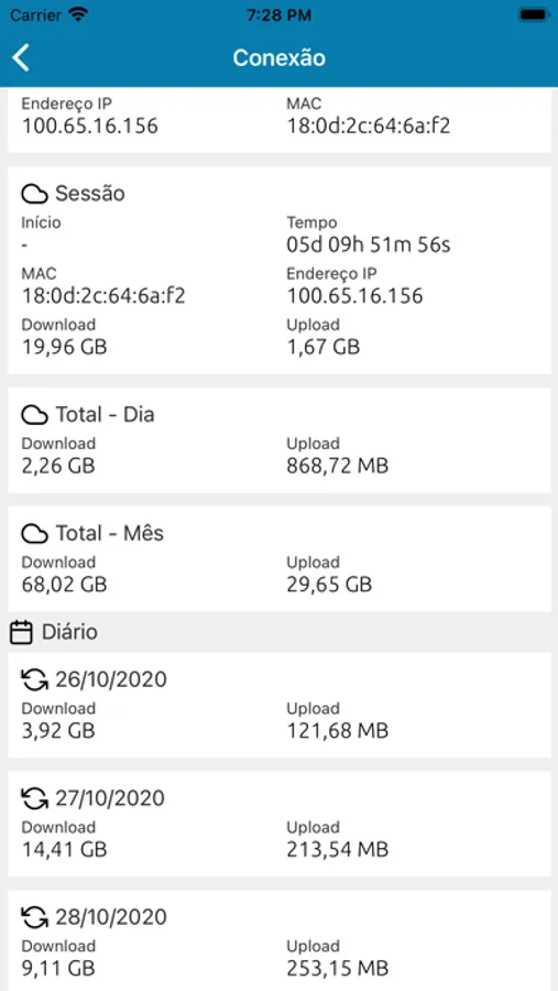 * Consulte seu consumo de rede