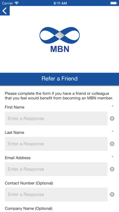 The app features a directory of MBN approved service providers and suppliers, as well as blogs, resources, promotions and an event gallery.