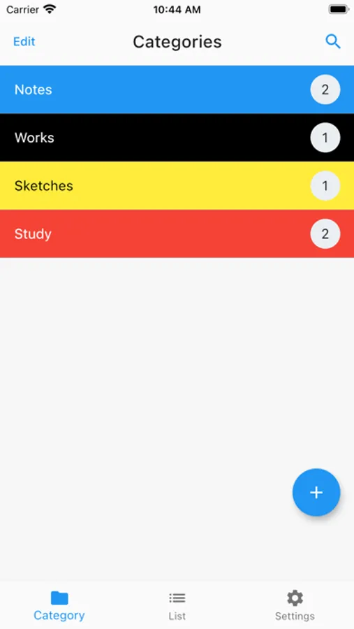 Tap and hold the memo to display the menu, and then tap “Move to a category". When the category setting screen opens, select the category you want to move to.