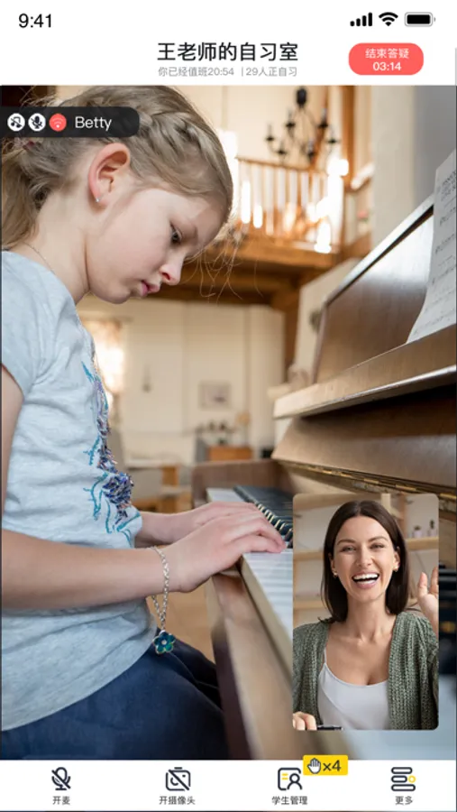 2.专业老师1V1答疑:自习室有专业钢琴老师全天式在线,孩子在家也能随时加入练琴,不必预约就能及时获得专业问题的1V1答疑。