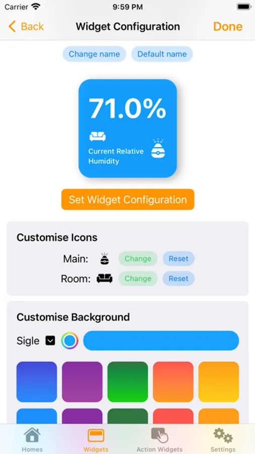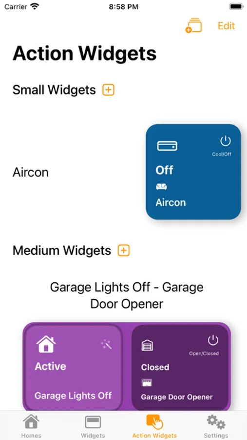 * Create custom small Widgets which will allow you to glance the status of your favourite accessories