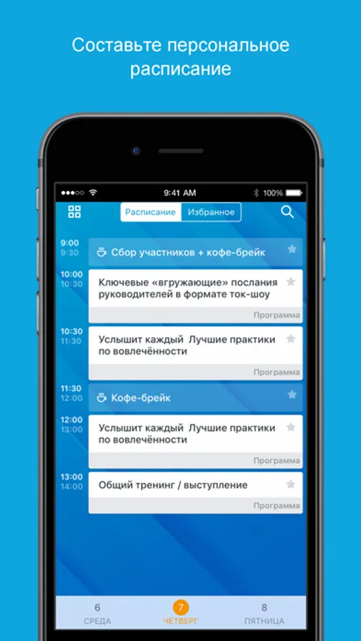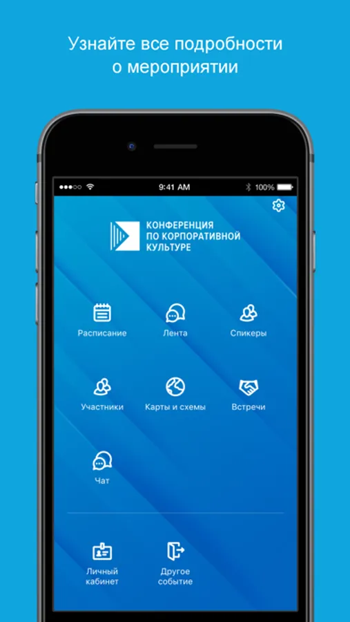 • Следить за обновлениями в расписании мероприятия, составе спикеров и тем в режиме реального времени;
