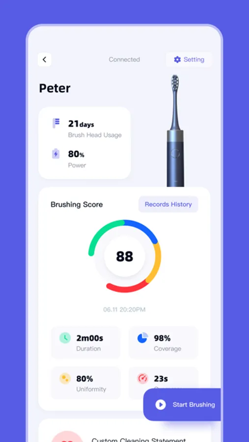 iSpruz is your personal oral care assistant, which can help you complete oral cleaning in a more comprehensive, scientific and personalized way.The application has visual brushing service. Through real-time + guidance, it divides the time according to the oral cavity, which can scientifically complete the tooth cleaning experience and promote oral health.Personalized key area identification, targeted tooth guard;Details of the brushing report to help you better develop oral care habits.