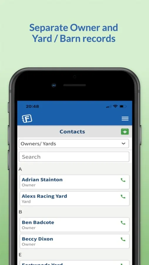 Customer records - Easy to find customer records. Separate records for Owners and Yards / Barns. Customer details, their horses, all invoices, past and future appointments all in one place. Move horses from one location / owner to another. Easy navigation and texting your customers.