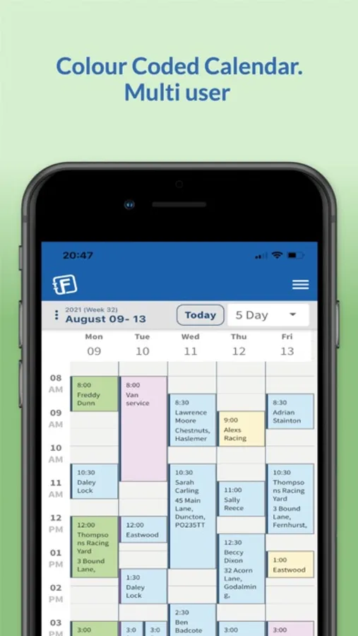Multi user - Have more than one truck? Add an extra user (chargeable) and they will have their own calendar. Free access for office users and a bookkeeper. The Office user will have full access, can make appointments and invoice / take payments.