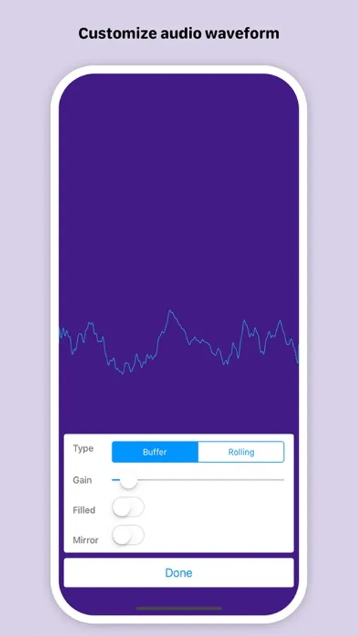 Use Audiom to record and share your voice to Instagram, Twitter, Facebook, or anywhere else as a video. Tap record to start and double tap on the screen to stop. Then add colors, change wave type, and insert a photo or video if desired.