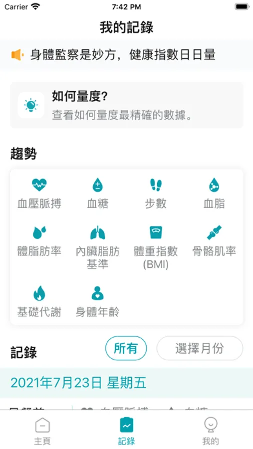 使用者可利用此程式監察及記錄血壓、血糖、血脂、體脂肪率及體重指數等指標。