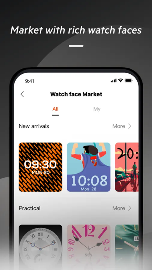 [Change Dial]: A rich selection of watch face themes are available in the brand-new cloud dial market, giving your device a new look every day;