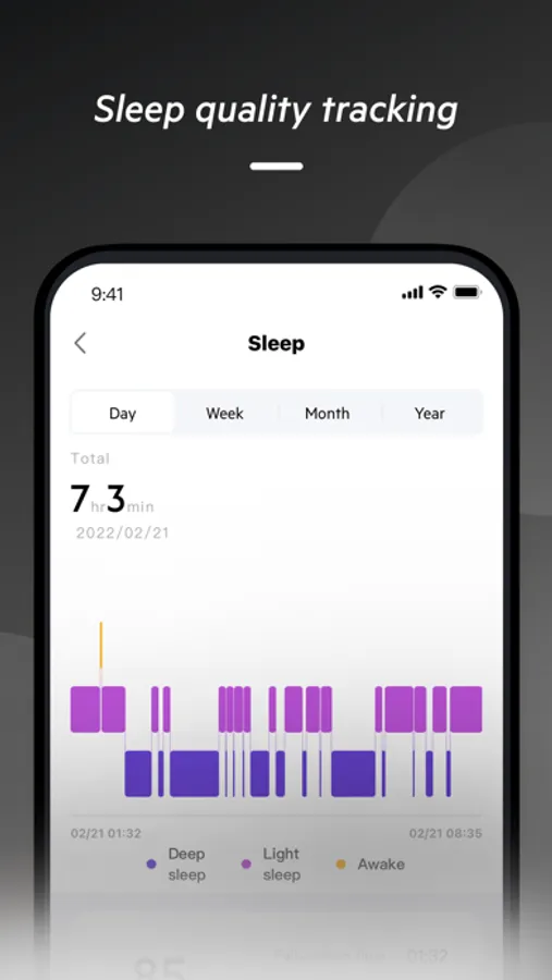 Record your sleep data, including sleep duration, deep sleep, light sleep and rapid eye movements (REM), in order to monitor and improve your sleep quality;