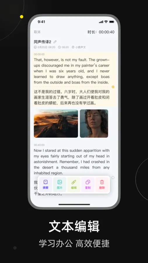 灵活适用于会议沟通、同声传译、演讲教学、对话采访等各种会议和记录场景,更高效、更便捷
