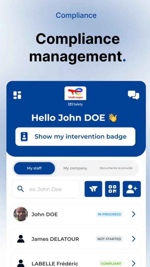 Whether you are a worker, external company manager, mandated supervisor / station manager , or a TotalEnergies collaborator, the TotalEnergies IZI Safety mobile application is made for you.