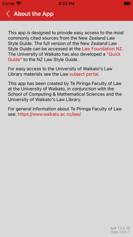 This app is designed to provide easy access to the most commonly cited sources from the New Zealand Law Style Guide. The full version of the NZ Law Style Guide can be accessed online at https://www.lawfoundation.org.nz/style-guide2019/