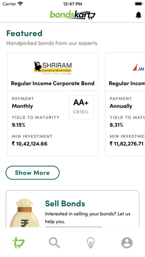 BondsKart is India’s first intuitive investment platform that brings a rich variety of premium bonds and debentures to retail investors, in a matter of just a few clicks. Our investors are offered exclusive access to our diverse portfolio that curates bonds with promising yields across large investor networks - without compromising on the ease of buying and selling. We house only top-notch securities, ranging from AA to AAA ratings, ensuring that our investors always have the edge