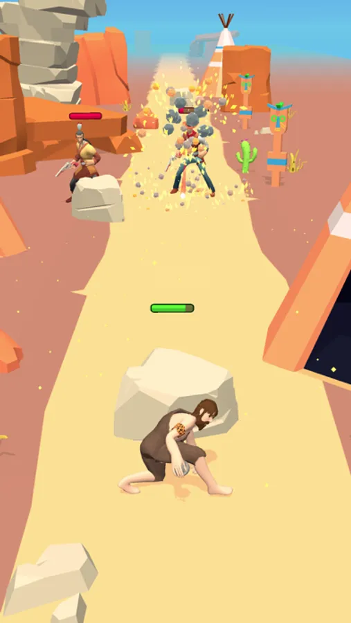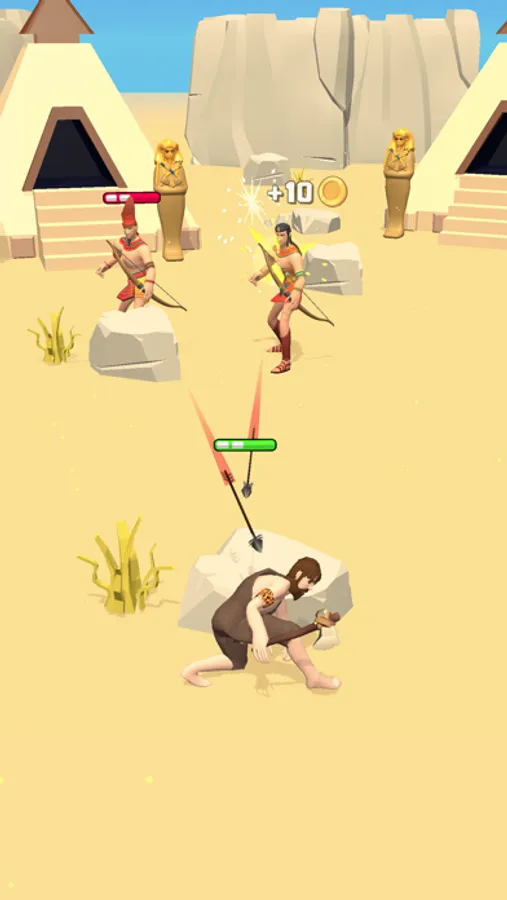 Upgrade your weapons! Trade that rock for a fancy stone axe. Give those pesky cyber soldiers a taste of the stone age. Even if they have a technological advantage, nothing can match your prehistoric muscle! Switch weapons using the buttons on screen.