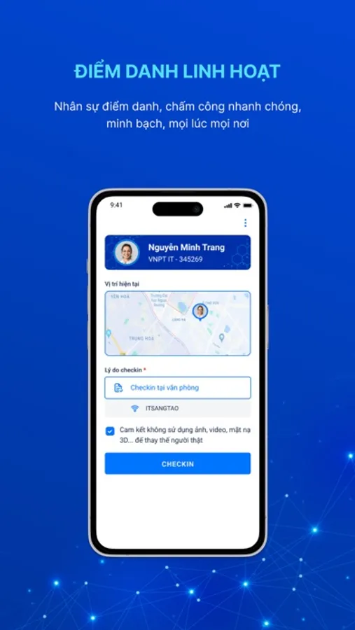 - Giúp nhân sự điểm danh, chấm công linh hoạt, minh bạch, mọi lúc mọi nơi