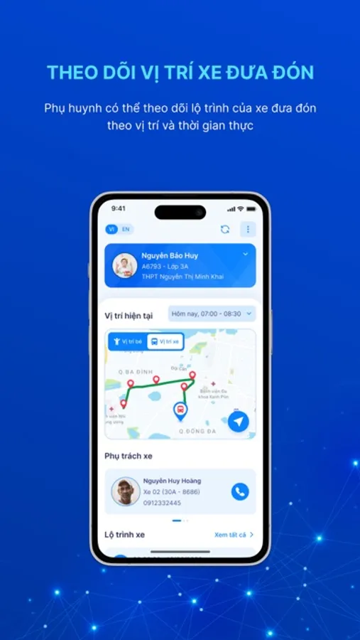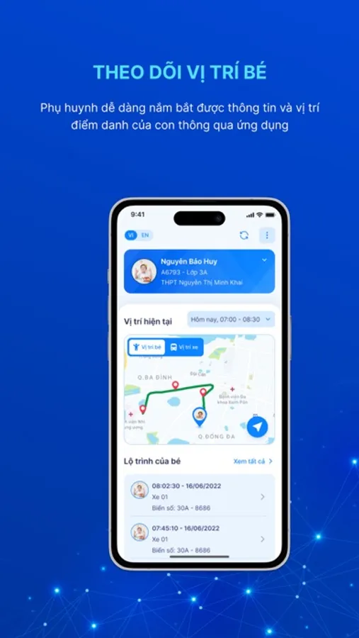 - Phụ huynh nắm bắt kịp thời, nhanh chóng thông tin điểm danh của con và lộ trình đi của xe đưa đón
