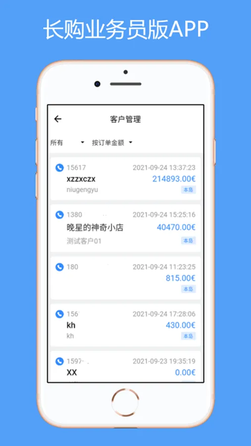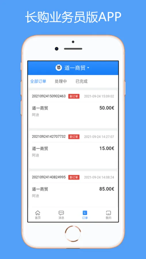 业务员可以通过长购业务员版APP操作客户订单,并且实时跟进订单状态,可以有效提高业务员的订单销售额。