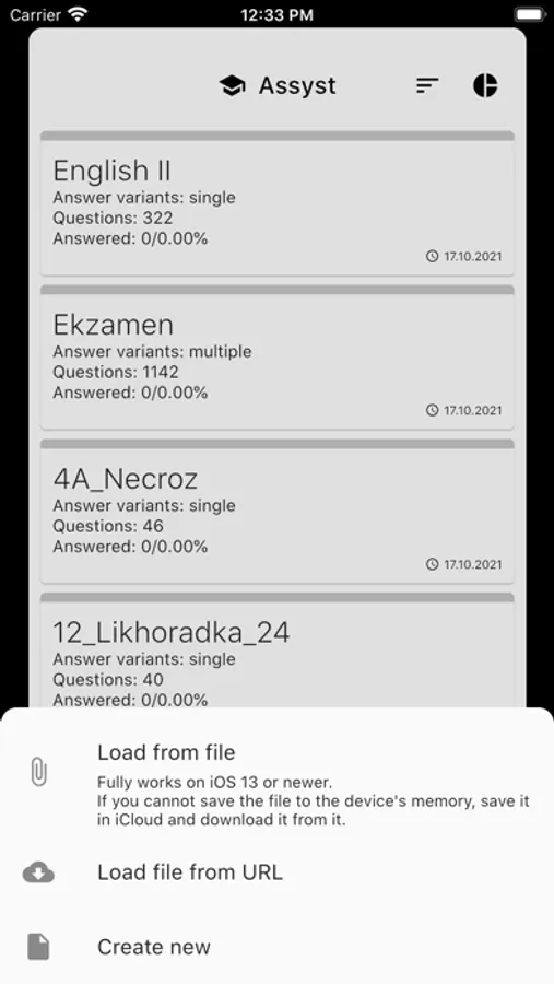 The program is a mobile replacement for the outdated desktop application Assist, designed for training tests in qst and qsz formats, which are actively used in training in higher educational institutions of the CIS