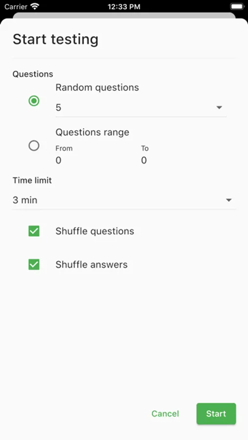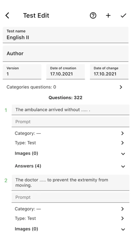 - The test can have an unlimited number of questions, and a question has an unlimited number of answers