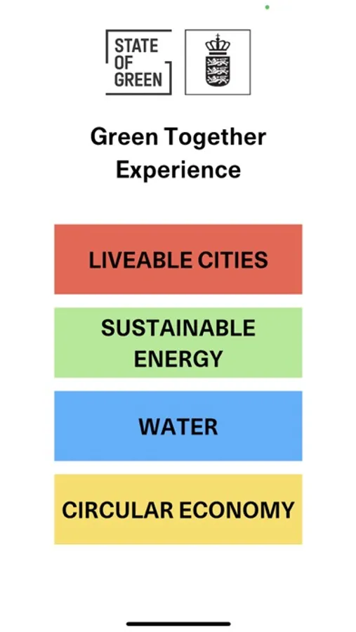 Green Together Experience is an Augmented Reality showroom demonstrating Danish green solutions to global challenges. The app includes a video guide, 3D models and 360° videos. This experience is presented to you by State of Green and The Danish Ministry of Foreign Affairs
