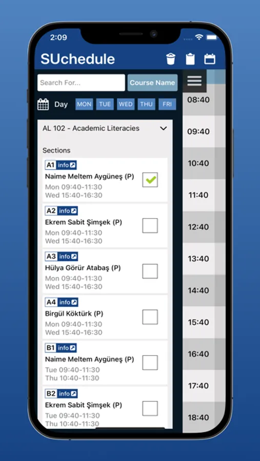 This application allows Sabancı University students to create their schedules with a friendly user interface. With this application, we hope to facilitate the course registration period for SU students.