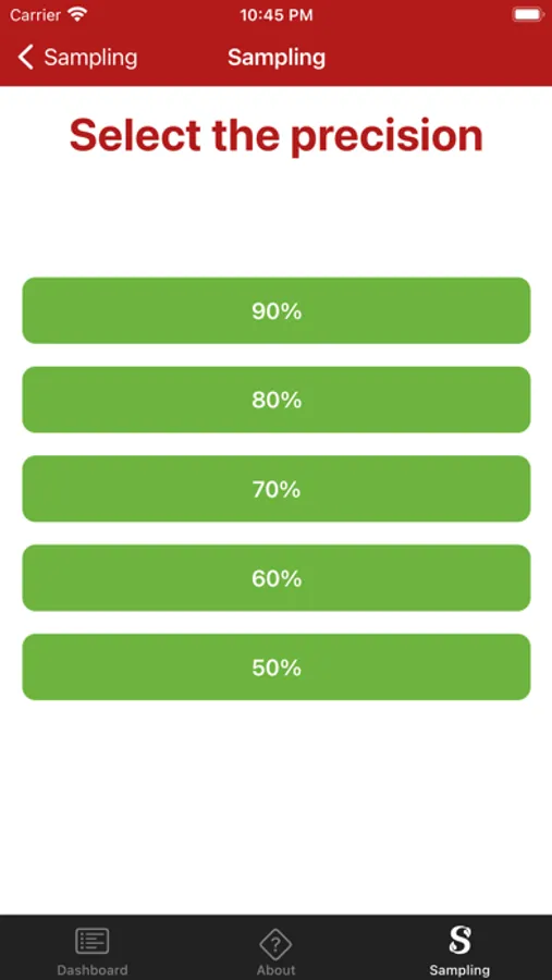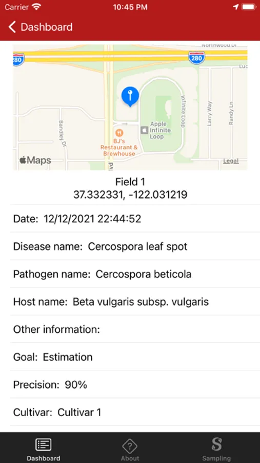 Users select the disease, goals of sampling, and precision or threshold desired. The user can precisely choose the location of the field on a map. To enable sampling, the users can select the number of diseased leaves at each sampling unit.