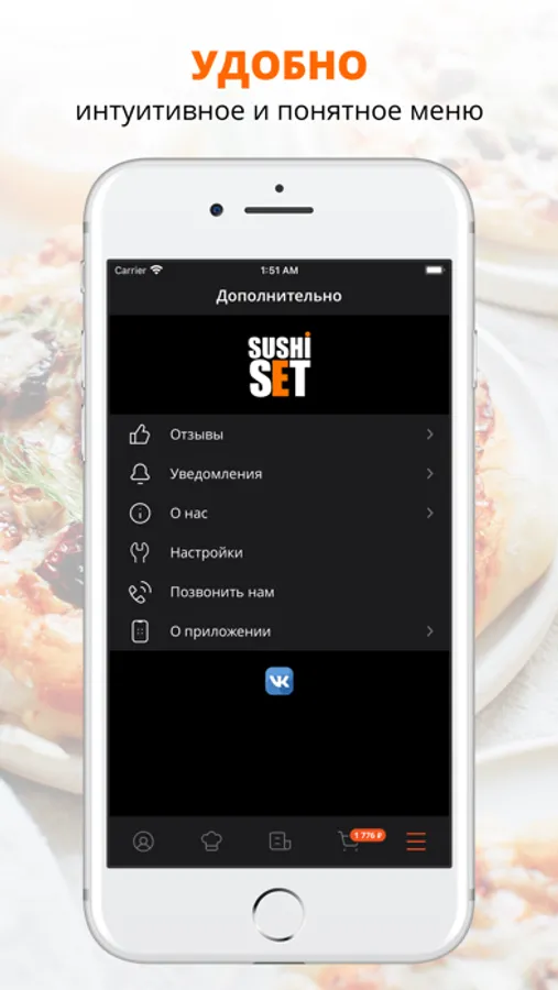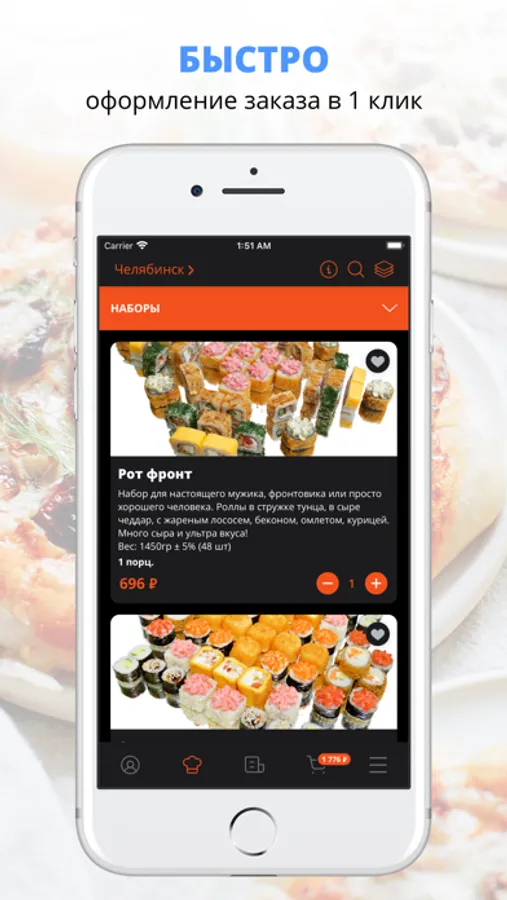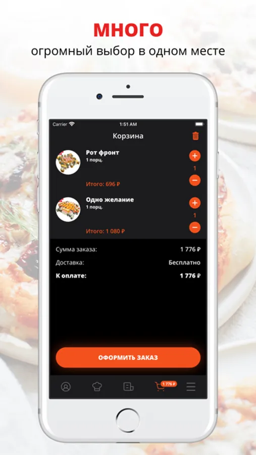 Скачивайте наше приложение, оформляйте заказ и наслаждайтесь любимой едой, где бы Вы ни были! Приятного аппетита!